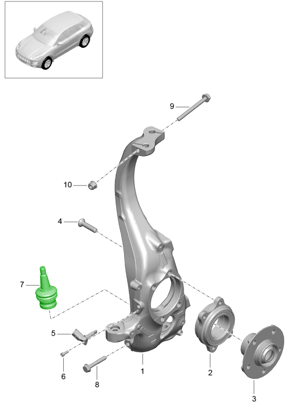 下球头是保时捷 Macan 95B / 95B.2 车型原装下前球头的直接替换件。该球头(也称为旋转球头)将下控制臂连接到转向节,使其能够在承载负载的同时进行旋转运动。该球头通常与 4G0407689C 交叉引用。