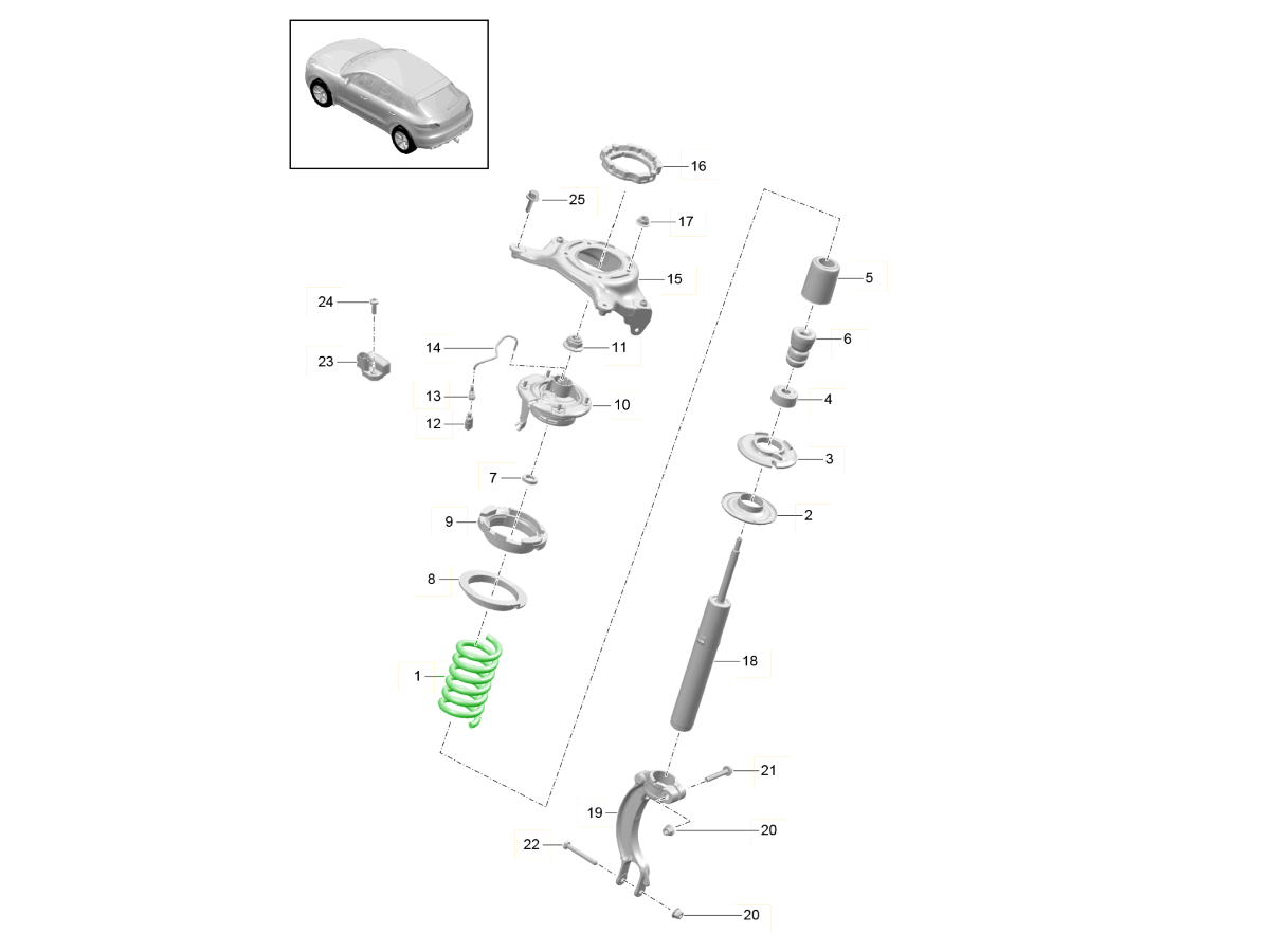 • 所有车型均配备优质保时捷前螺旋弹簧。