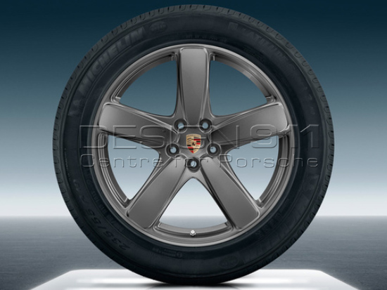 Original Porsche 21-inch Macan Sport Classic summer wheel-and-tyre set. One-piece forged alloy wheel in 5-spoke Sport Classic design. Painted in Platinum (satin-gloss), including wheel hub cover in Platinum (satin-gloss) with coloured Porsche crest. For vehicles with Tyre Pressure Monitoring.Wheel dimensions (offset (ET) in mm):