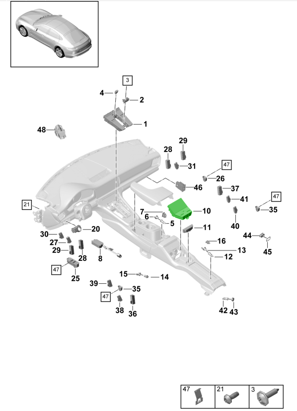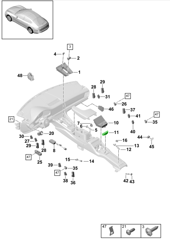 中央和中控台组件结合了设计和功能,为您的保时捷提供存储、控制访问和驾驶室结构。