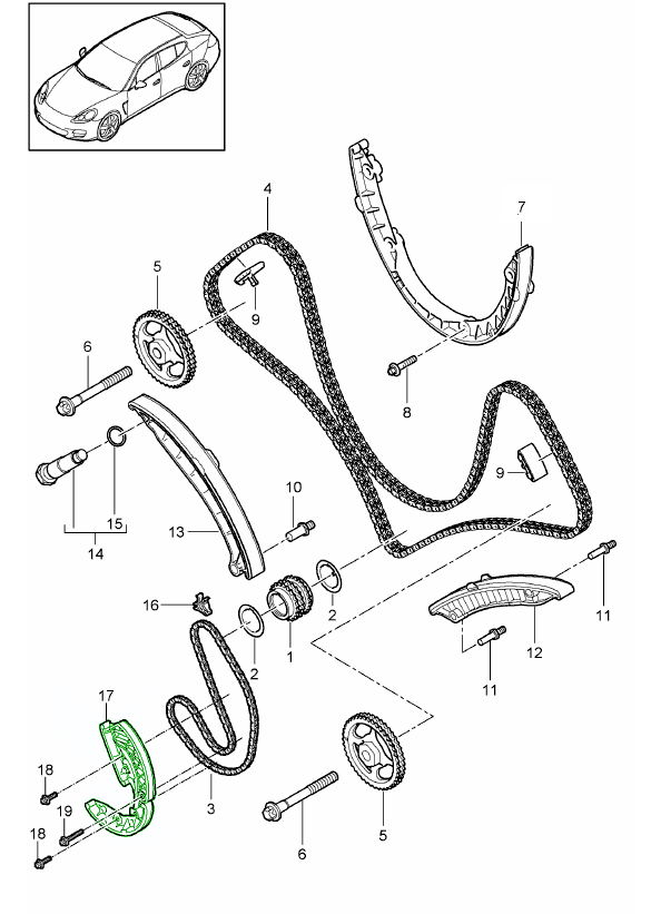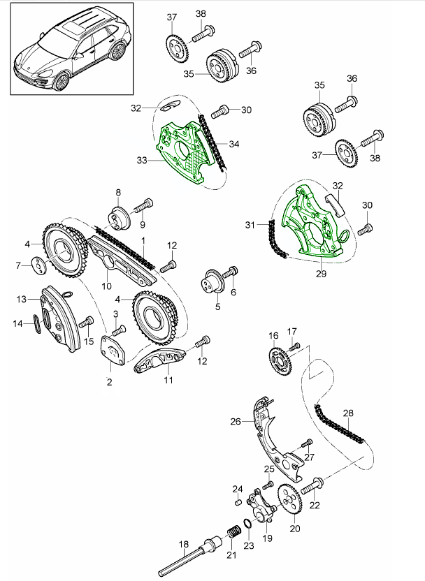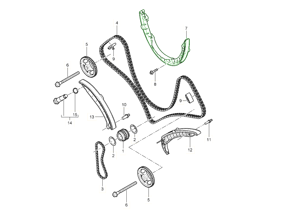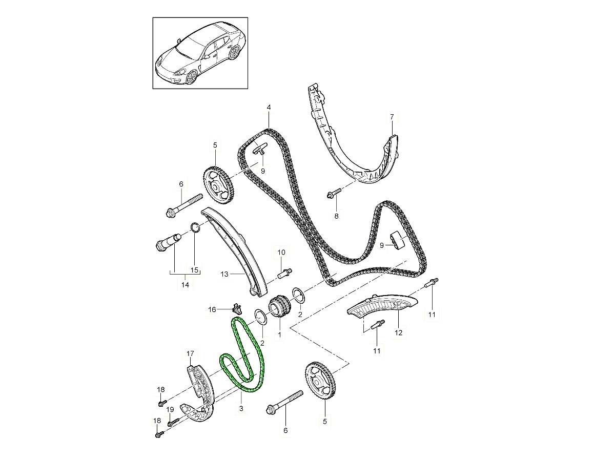 - 专为保时捷发动机设计的精密正时链、导轨和张紧器。