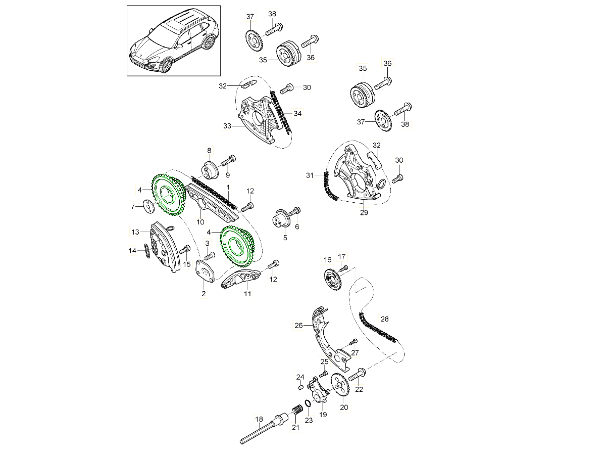 - 专为保时捷发动机设计的精密正时链、导轨和张紧器。