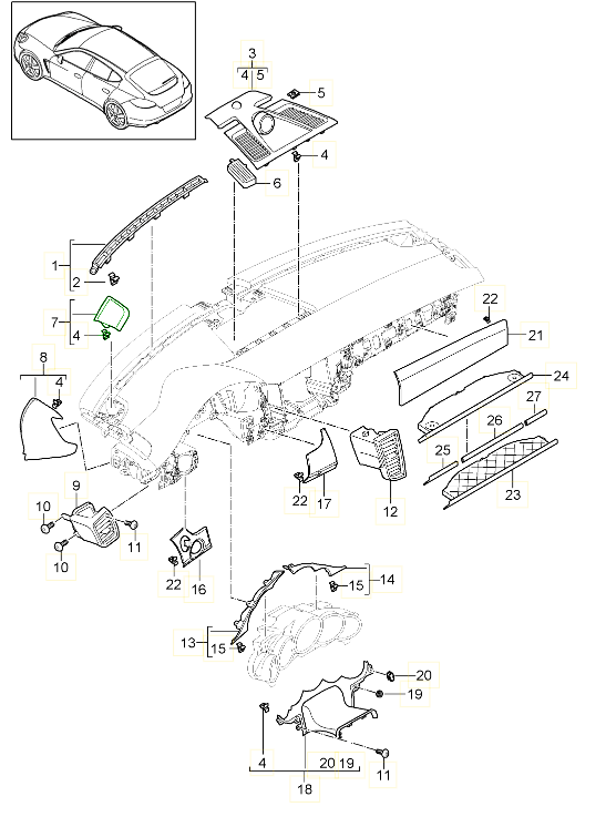 仪表板部件对您的保时捷内饰设计、功能和驾驶体验至关重要。从开关、通风口和饰板到仪表外壳和支架,这些部件确保您的仪表板保持坚固、时尚且功能齐全。随着时间的推移,仪表板部件可能会磨损、破裂或松动,从而影响美观度和可用性。