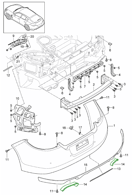 所有必要的紧固件、夹子和硬件,用于安全、工厂正确安装保时捷后保险杠饰件和盖板。