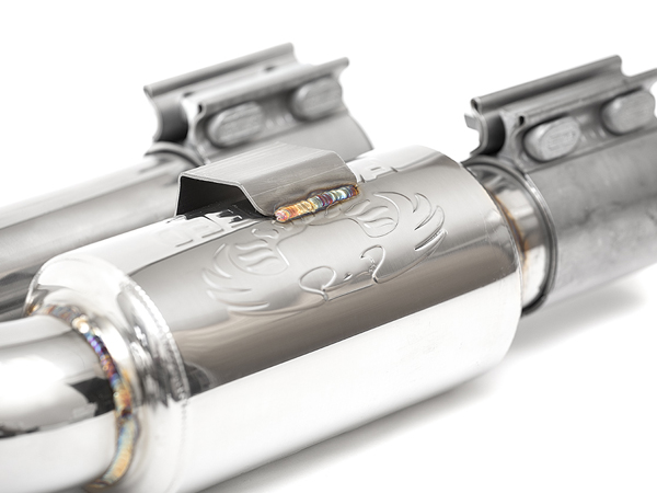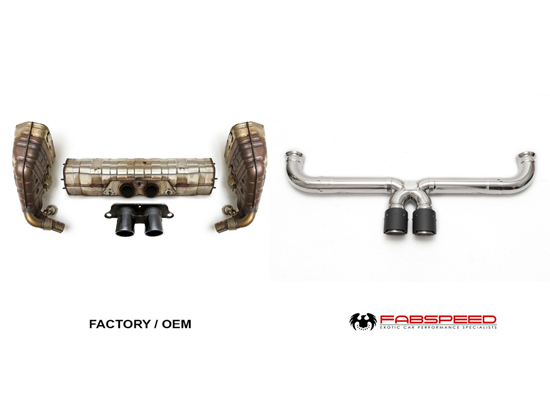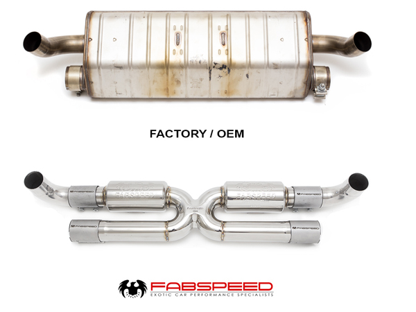 Fabspeed 的 T304L 不锈钢 X-Pipe 取代了重型工厂中心消声器,增加了动力,同时改善了排气音调并减轻了重量特征: