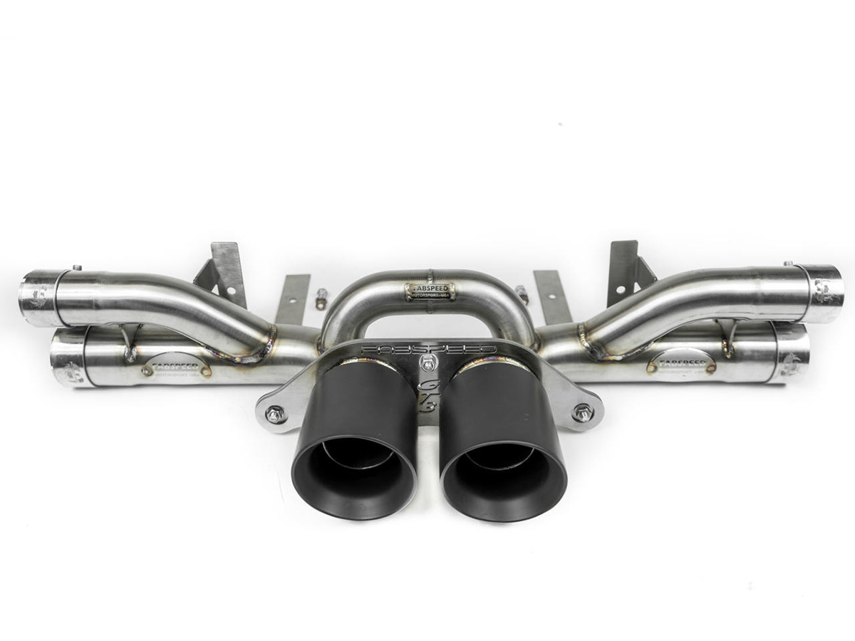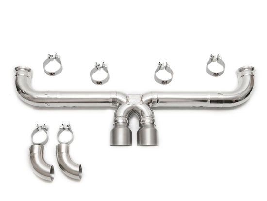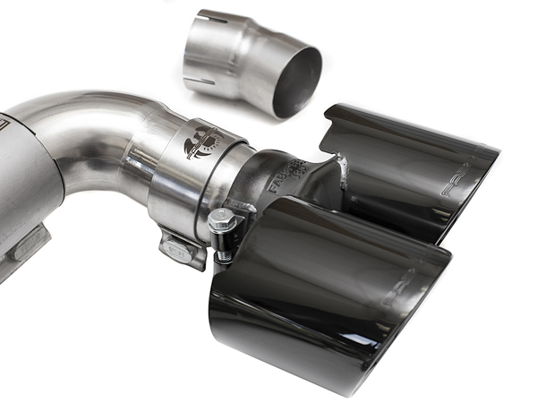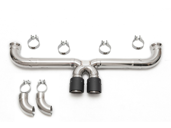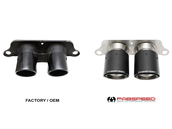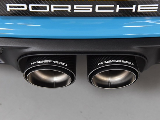• 包括 4 英寸 102 毫米豪华风格尖端,您可以选择饰面或重新安装工厂 OEM 保时捷 GT3 尖端和/或 Fabspeed 90 度向下调节。