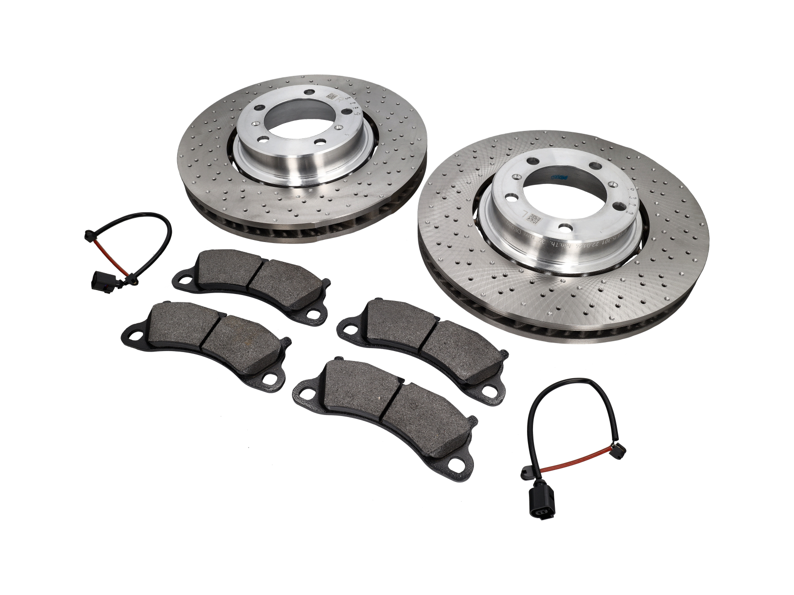 该套件旨在轻松更换 OEM PCCB 碳陶瓷 (M450) 刹车盘和刹车片