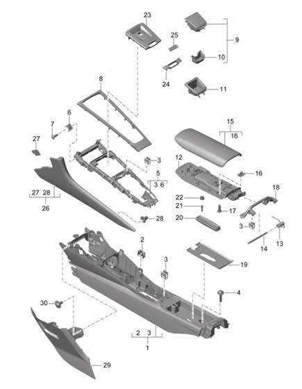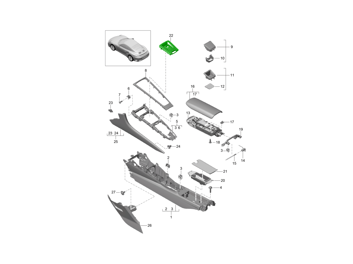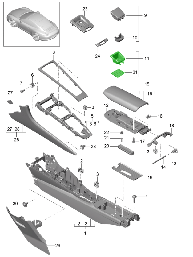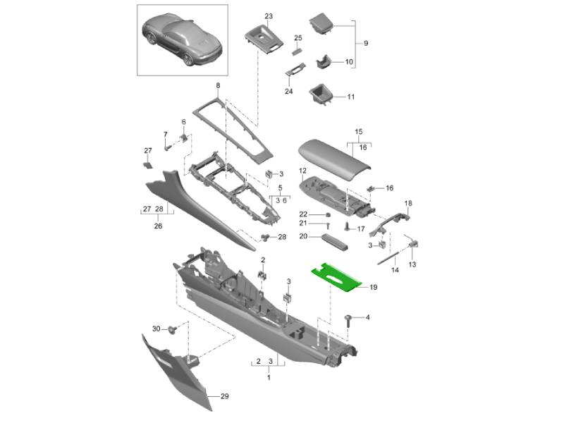 中央和中控台组件结合了设计和功能,为您的保时捷提供存储、控制访问和驾驶室结构。