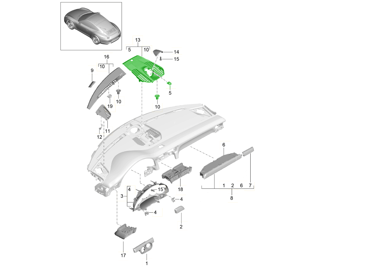 仪表板组件协同工作,为您的保时捷驾驶舱提供结构、功能和风格。
