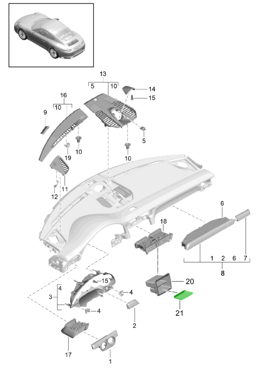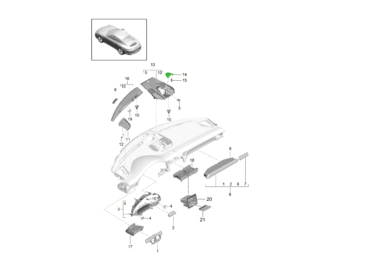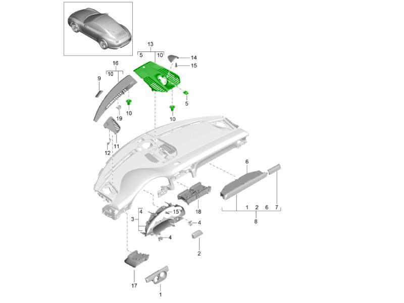 仪表板部件对您的保时捷内饰设计、功能和驾驶体验至关重要。从开关、通风口和饰板到仪表外壳和支架,这些部件确保您的仪表板保持坚固、时尚且功能齐全。随着时间的推移,仪表板部件可能会磨损、破裂或松动,从而影响美观度和可用性。