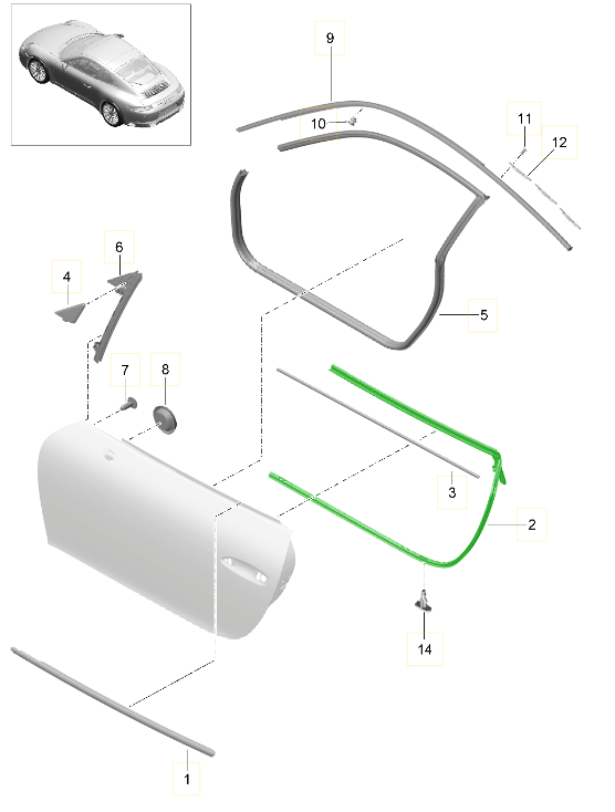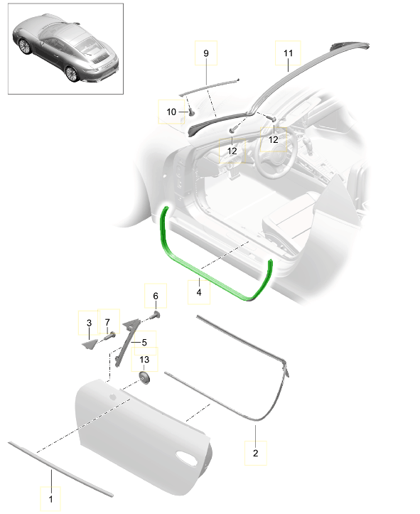 • 优质保时捷橡胶门密封条和挡风雨条。