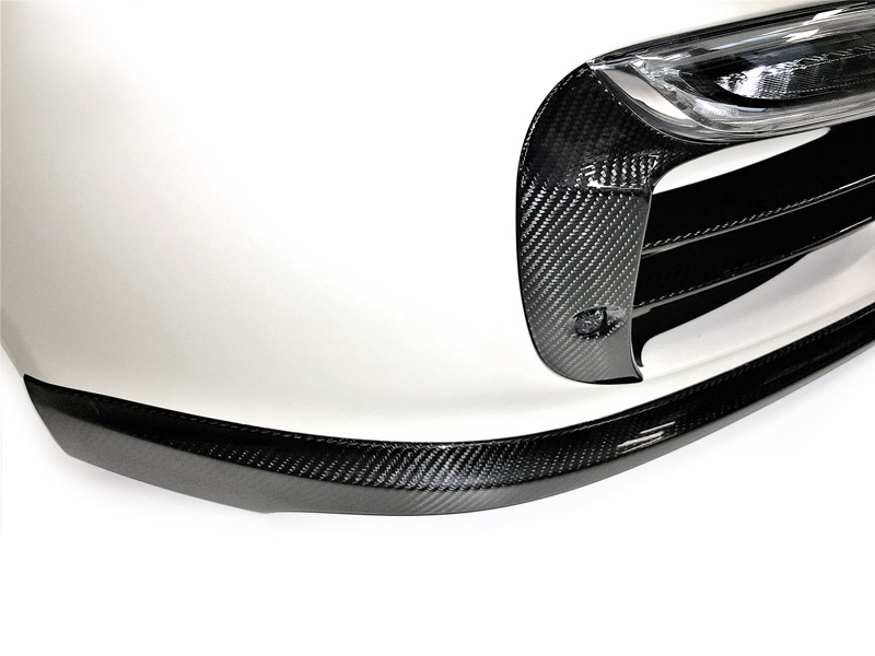 这些前保险杠鸭翼(俯冲机)旨在增加前端的下压力,采用预浸高压釜碳纤维制成,表面具有高光泽度。