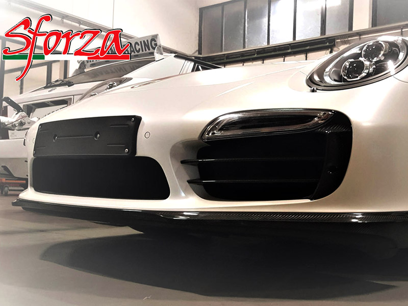 Front splitters are very effective at producing front end downforce without significantly increasing drag and this is done by creating a large pressure delta between the top and bottom surfaces. We then incrementally improved the front splitter by adding design tweaks to the underside of the splitter to improve flow with our carbon splitter diffusers. All of this adds up to a front splitter kit for the 991.1 GT3RS that creates a large amount of additional front end downforce.