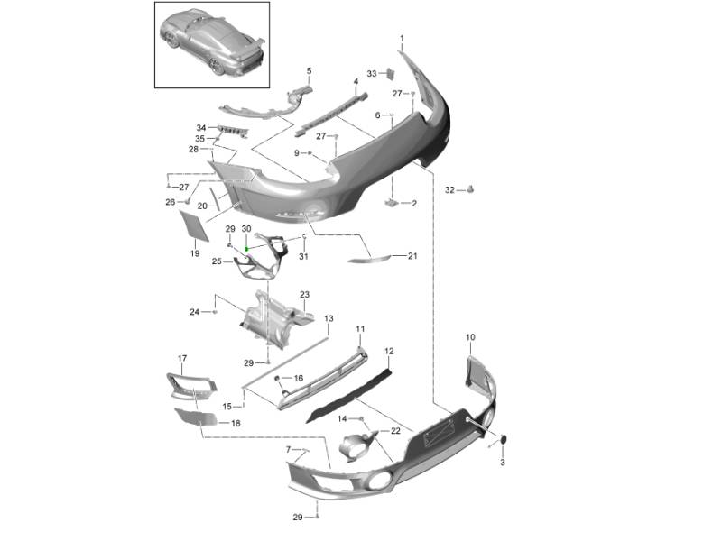 全面的保时捷后保险杠固定套件,包括所有必要的螺丝、垫圈和夹子,可实现快速、专业的安装。