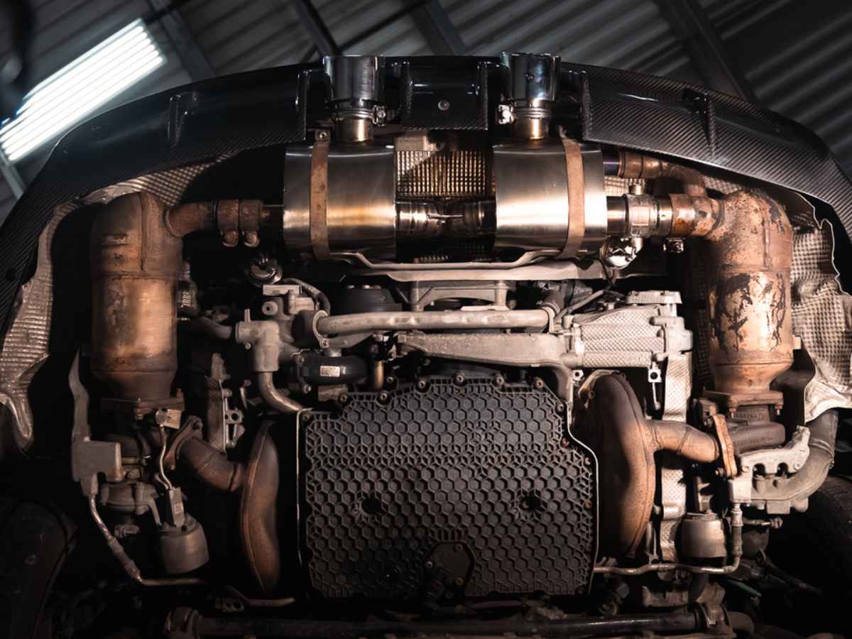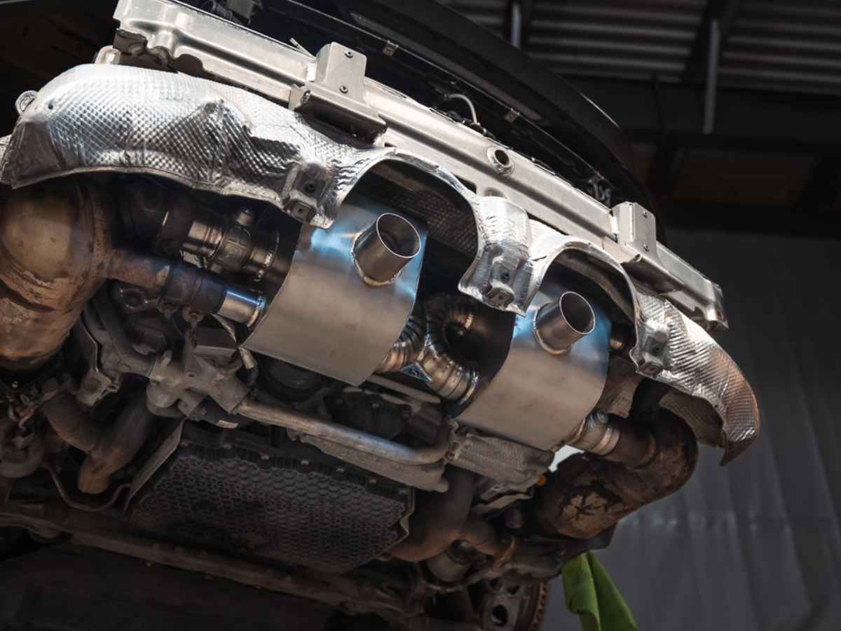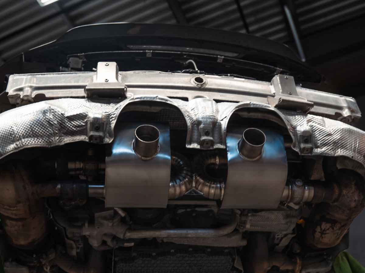 The tailpipes are located low down at the sides of the car. There are two tailpipes at each side