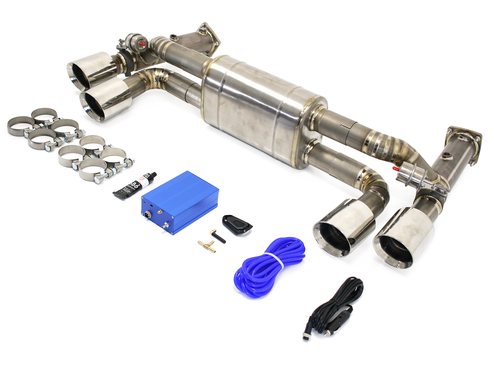 请注意:本系统不包含阀门控制系统,您可以使用运动型排气管的现有线路。如果您需要无线遥控套件,请点击此处订购:9996001111