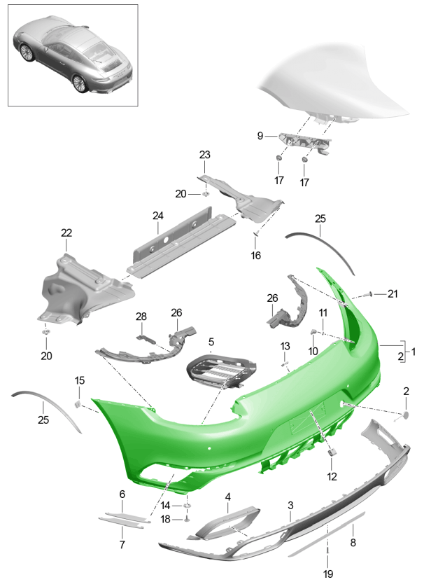 1 x 后翼扰流板延伸。保时捷 991 Turbo (P991.20.3020