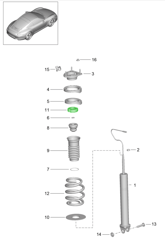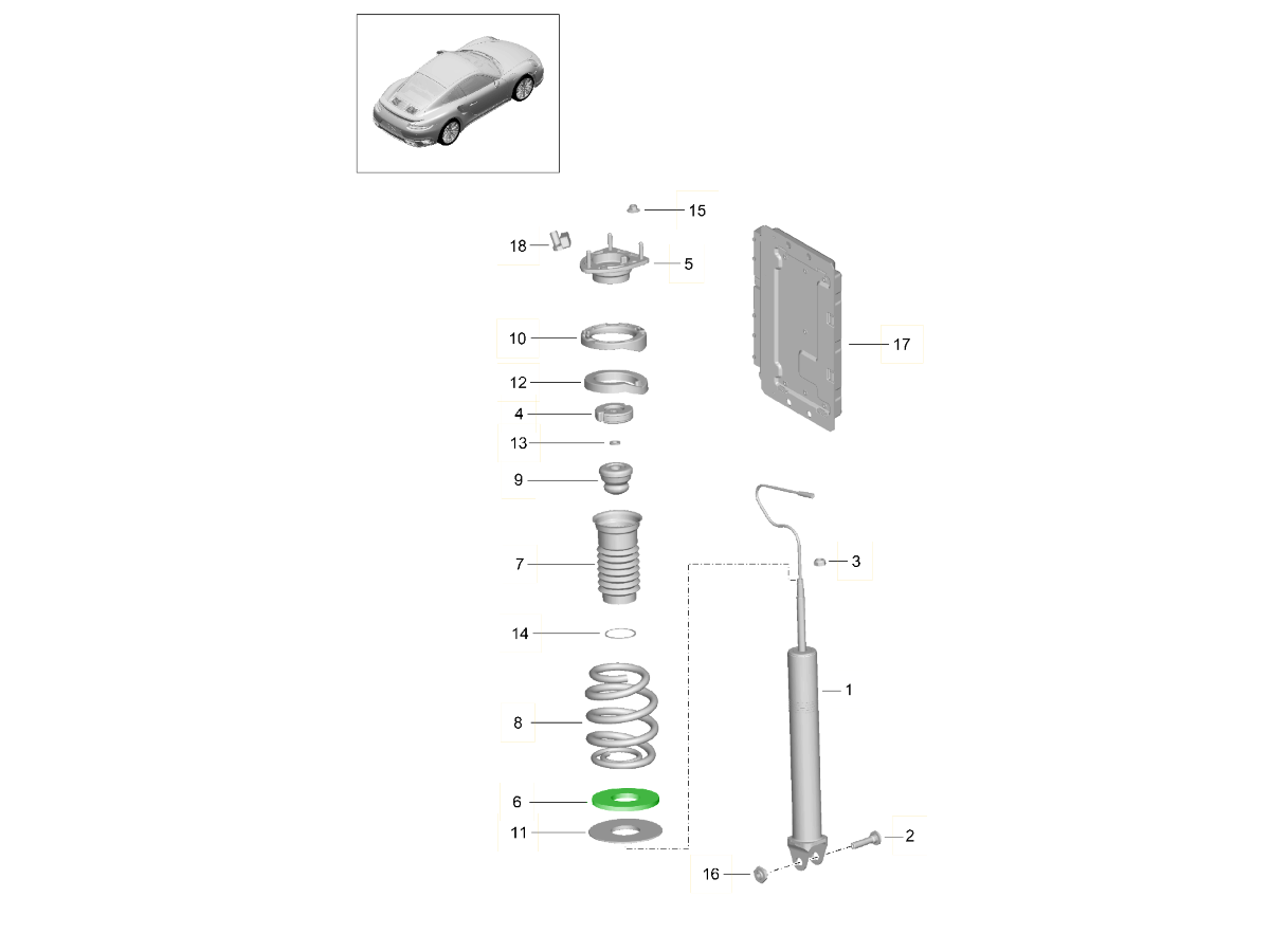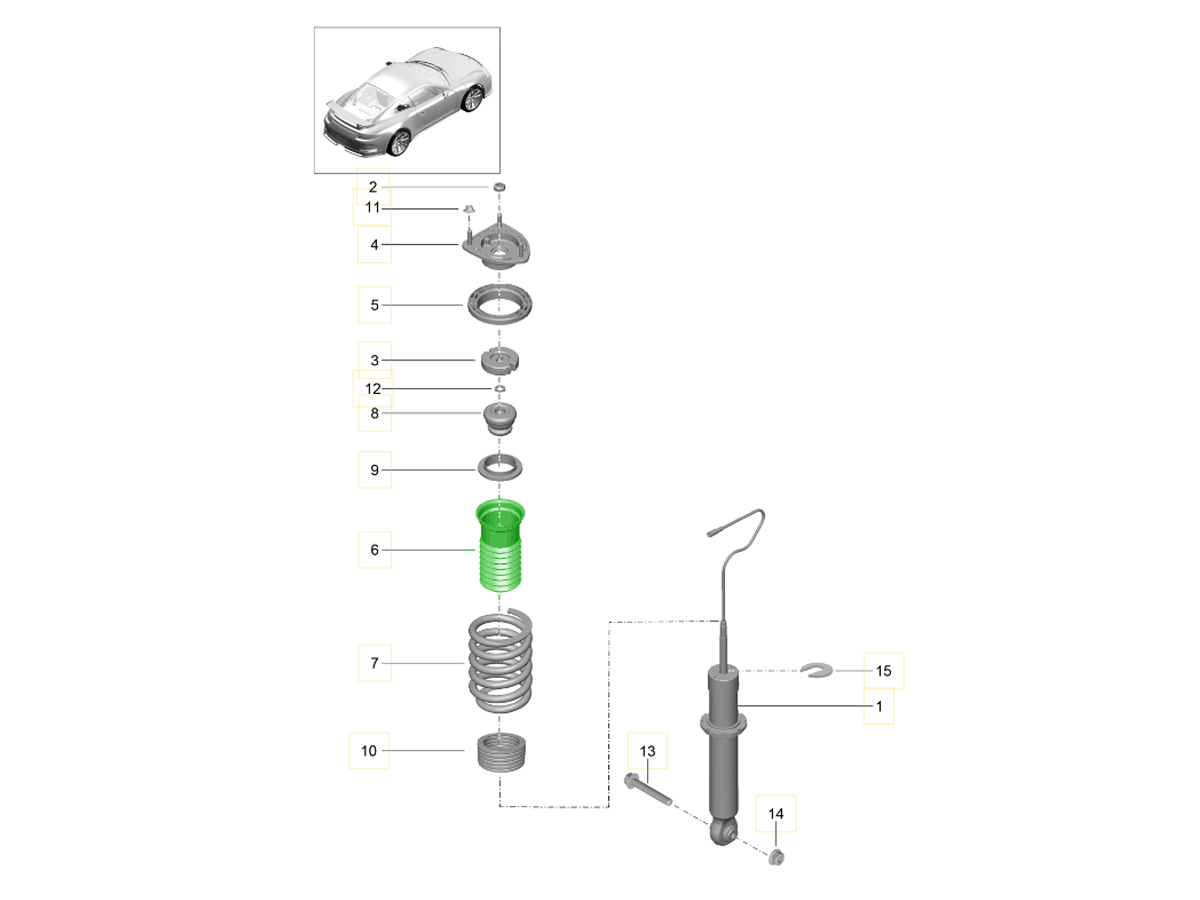 2 x 后减震器顶部安装插件。保时捷 991 (99133369101