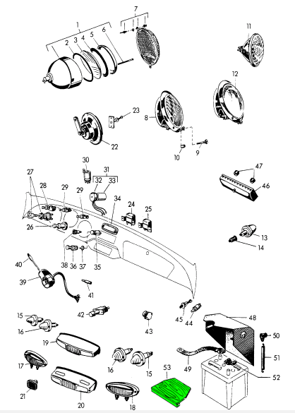 The high-quality 77AH 6V battery from the current Porsche standard production supplier can be used for the Porsche 356 from model years 1950 to 1965 with 6V vehicle electrical system voltage. With original styling, it features a black hard-rubber housing and open cell connectors. And of course the Porsche logo. The cover (part no. PCG61101501) and mounting base (part no. 64461111001) for secure mounting will shortly be available.