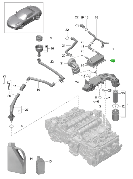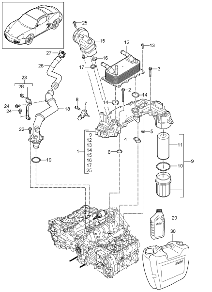 - 高品质保时捷机油滤清器外壳和密封组件。
