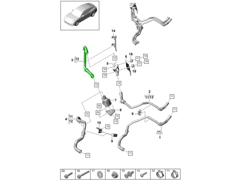 - 精密设计的保时捷加热器软管和冷却液管。